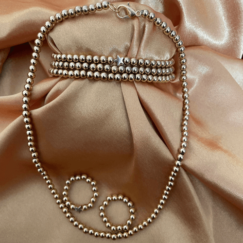 Each bead is crafted in stainless steel, durable, hypoallergenic, and polished to a soft gleam. This set is more than adornment; it’s a tribute to those who carry their own light, and to the stars that have guided Ayiti Perle’s journey from dream to reality.